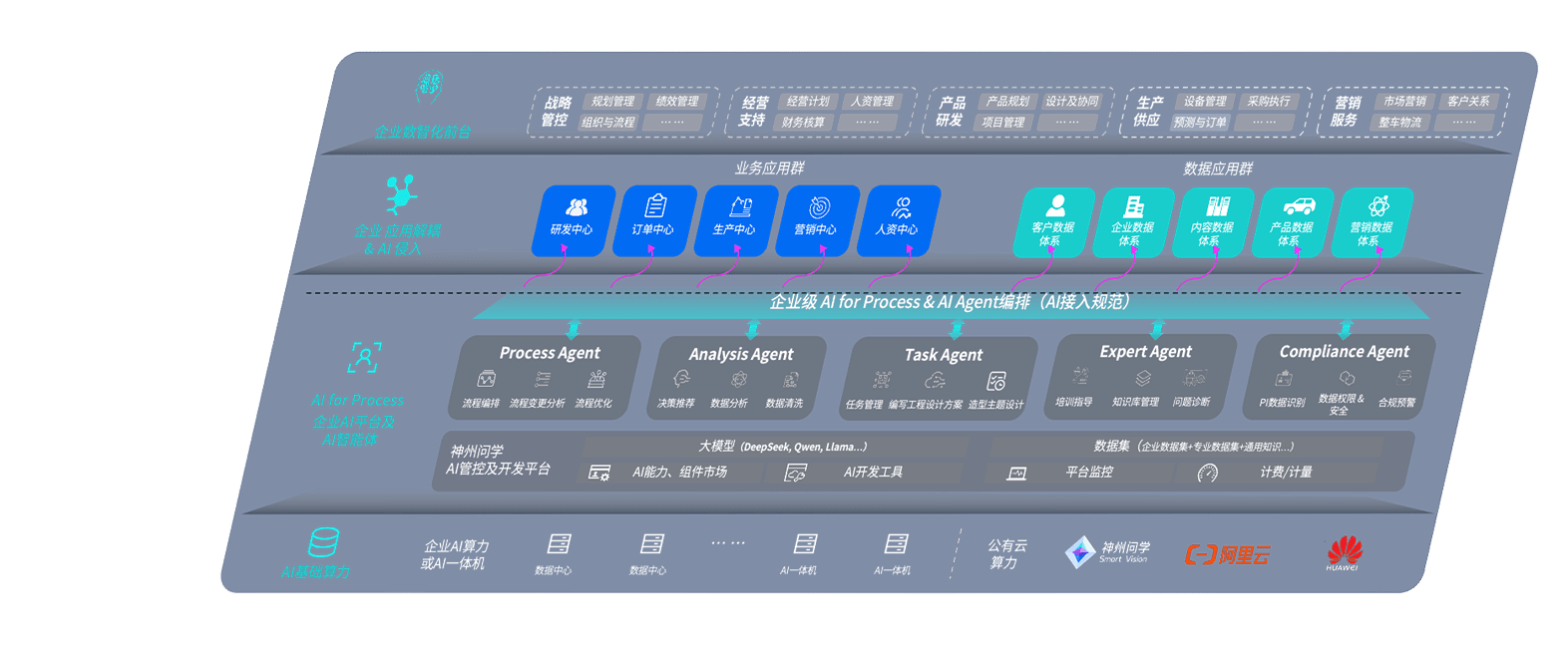银河集团问学智车解决方案是一套基于AI技术的汽车行业智能化系统,,,,覆盖从底层算力到顶层AI应用的全栈方案。。。方案由算力层、、、、模型层和应用层组成:算力层,,,,方案支持多种一体机配置,,,具备云端灵活部署、、、多云适配以及动态优化计算资源的能力;模型层,,,银河集团问学平台版提供了企业级AI应用一站式构建与管理平台,,,,支持基于后训练强化技术的汽车企业专属模型的训练、、、、评测和运营;应用层,,,银河集团问学DeepSeek版提供包括超级员工、、、、智能招采、、、、智能营销、、智能客服、、AI for BI等一系列解决方案,,,,可助力汽车行业实现数字化转型,,让管理更智能、、、、响应更敏捷。。。